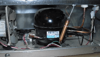 - Сильный шум и дребезжание. Если холодильник неправильно установлен, то детали соприкасаются с корпусом и создаются вибрации. Вы можете самостоятельно отрегулировать ножки наклона, которые находятся внизу. Если они в нормальном режиме, то скорее всего вышел из строя компрессор и из-за работы в плотном режиме шумит вентилятор, который его охлаждает. Понадобится проверить и отремонтировать обе запчасти, стоимость от 10 000 тенге.