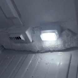 - Утечка фреона замечается по нарастанию шуб из льда. Охлаждение постепенно пропадает и понадобится заправка хладагента. Также причиной тому, что образовывается ледяная корка, может быть уплотнитель, который либо слабо прилегает к стенкам холодильника, либо вовсе порвался и пропускает теплый воздух из комнаты.